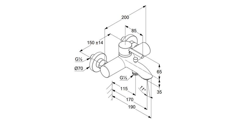 Kludi Bozz egykaros kádtöltő- és zuhanycsap NA 15 teli fogantyú falra szerelhető kivitel