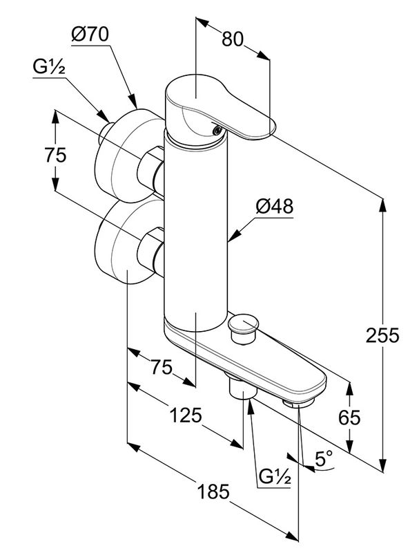 függőleges csaptelep, teli fogantyúval, falra szerelhető kivitel
