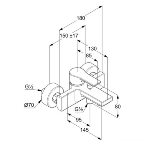 KLUDI-ZENTA SL kádtöltő- és zuhanycsap teli fogantyúval,falra szerelhető kivitel
