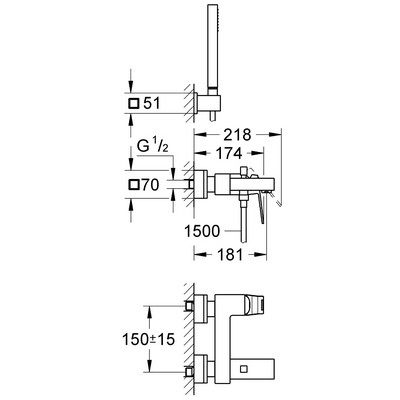 Grohe Eurocube fali, egykaros kádtöltő-és zuhany csaptelep, zuhanyszettel