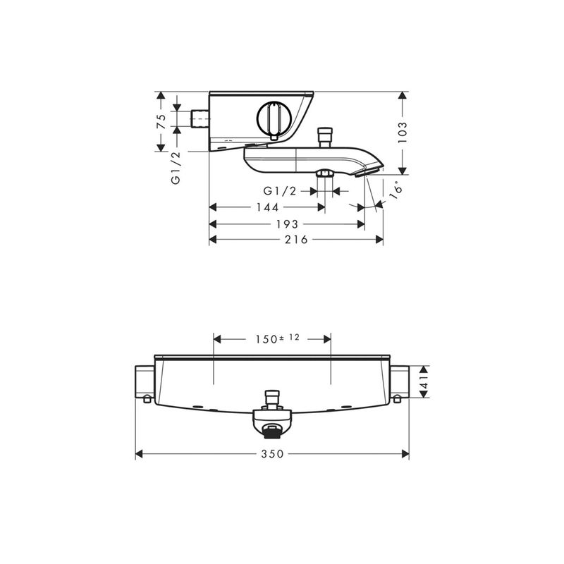 Hansgrohe Ecostat Select® fali, termosztátos kádtöltő- és zuhany csaptelep, zuhanyszett nélkül