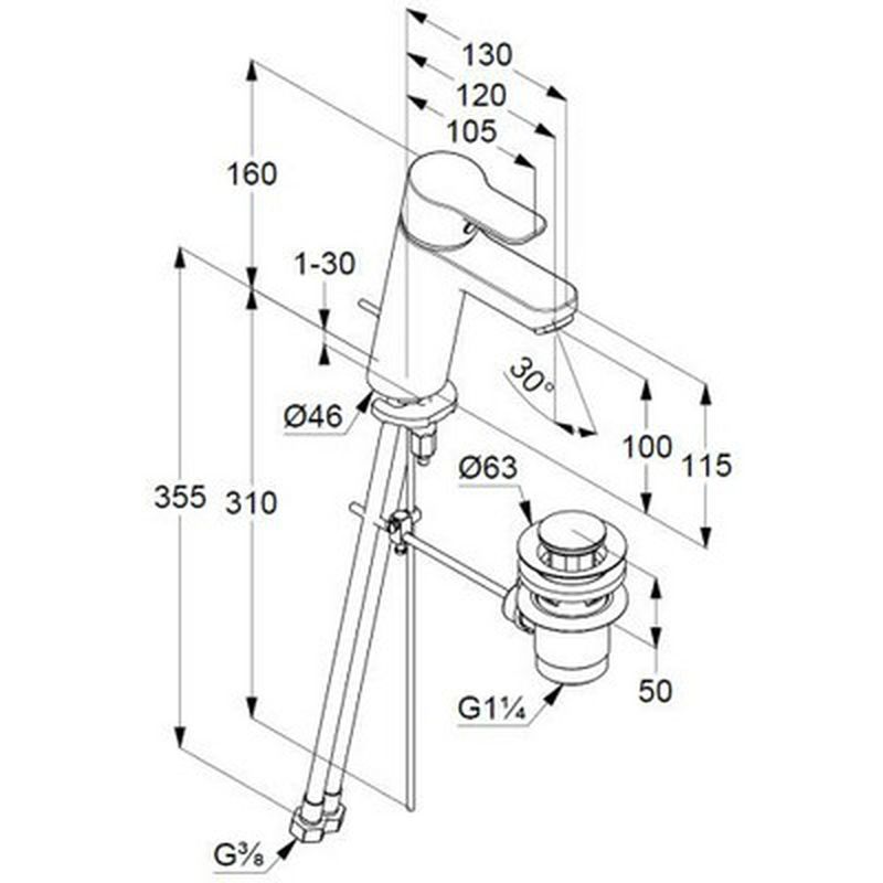 image-1219aeb7.png Alca A390 Click-Clack mosdó leeresztőszelep 5/4", túlfolyóval, fémből, nagy dugóval