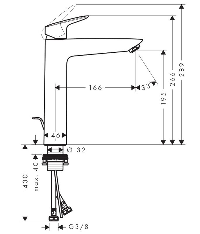 Hansgrohe Logis 190 magasított mosdó csaptelep, automata leeresztővel