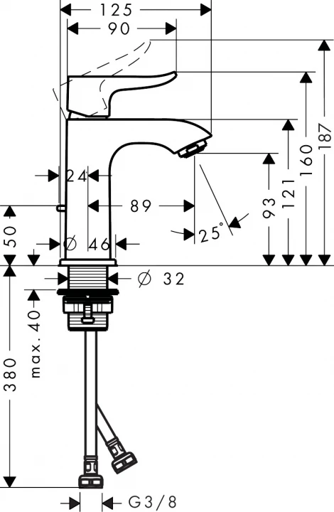 01_1740768.png Hansgrohe Metris 110 mosdó csaptelep, húzórudas lefolyógarnitúrával,nyílt rendszerű vízmelegítőkhöz