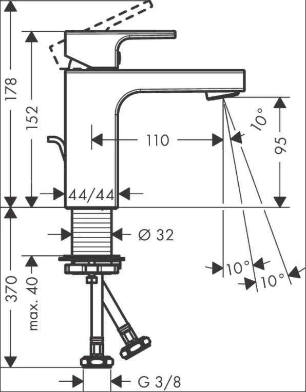 Hansgrohe Vernis Shape100 mosdó csaptelep, automata lefolyógarnitúrával