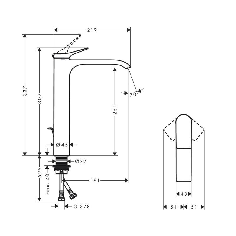 Hansgrohe Vivenis 250 egykaros mosdó csaptelep,automata lefolyógarnitúrával
