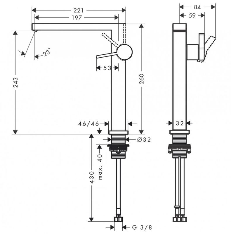 kifolyó magassága: 243 mm