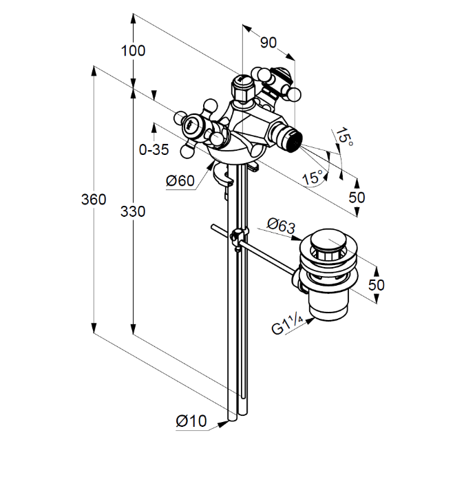 01_6900363.png Kludi Adlon keresztfogantyús 3 lyukas mosdó csaptelep, automata leeresztő szeleppel