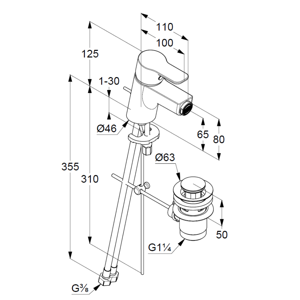 01_4510406.png Kludi Pure&Easy 60 mosdócsaptelep leeresztővel