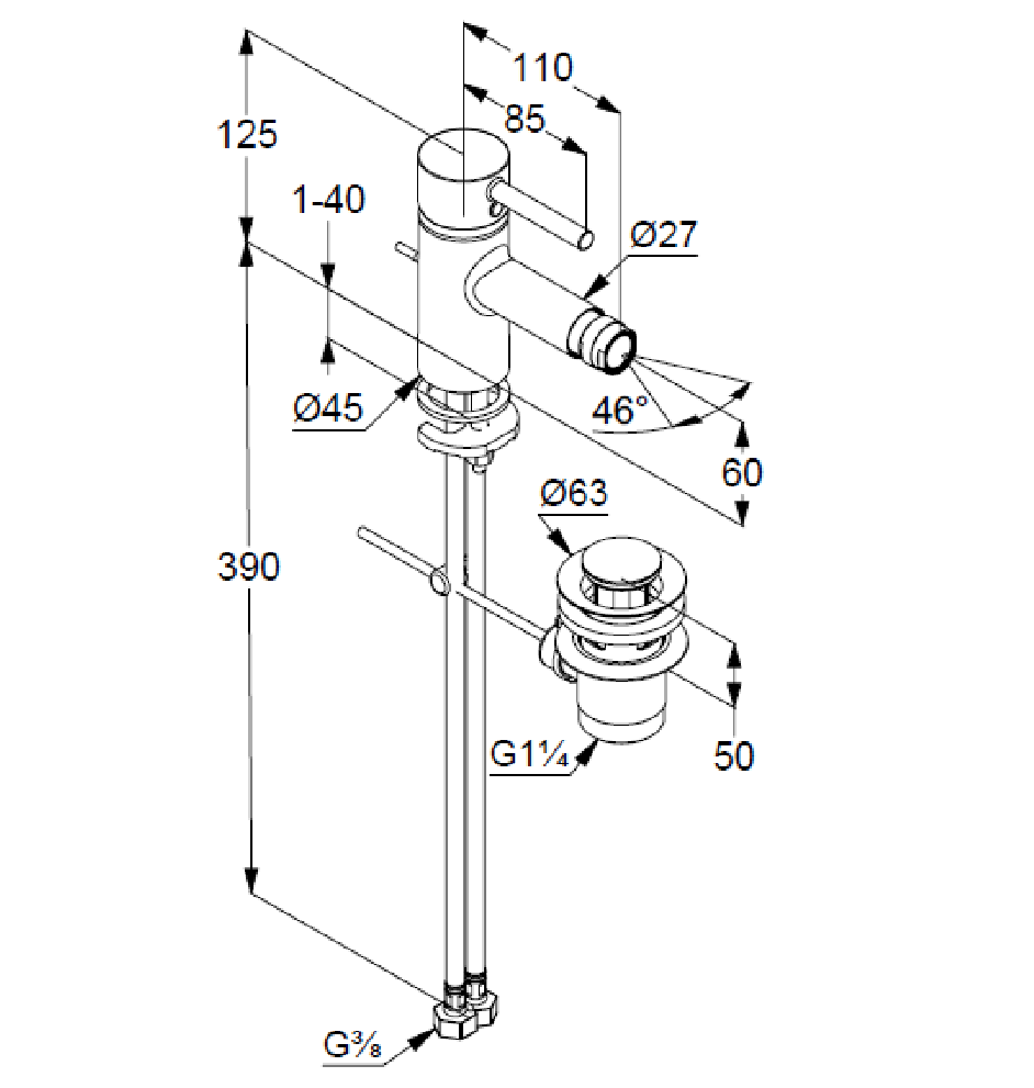 Kludi Bozz egykaros bidécsaptelep,automata leeresztővel