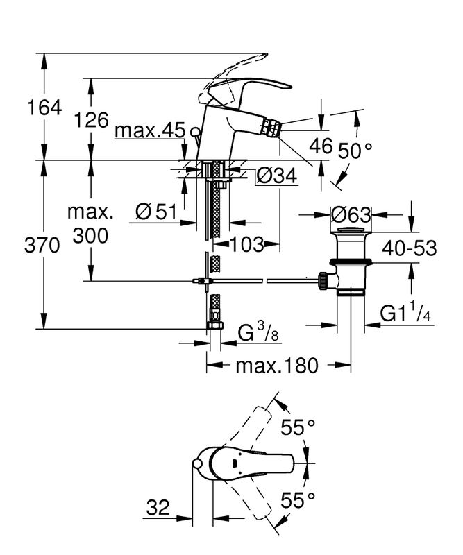Grohe Eurosmart S bidécsaptelep, egylyukas kivitel, fém fogantyúval