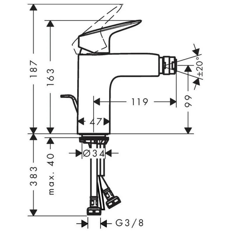 Hansgrohe Logis egykaros bidé csaptelep,automata leeresztővel, króm