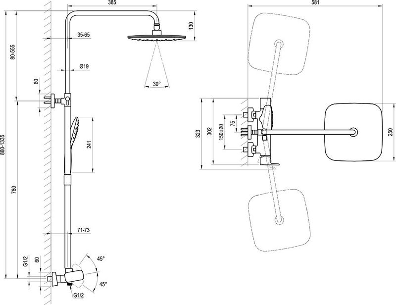 A zuhanyoszlop lehetővé teszi a fejzuhany magasságának egyszerű beállítását, és oldalirányban is elforgatható.