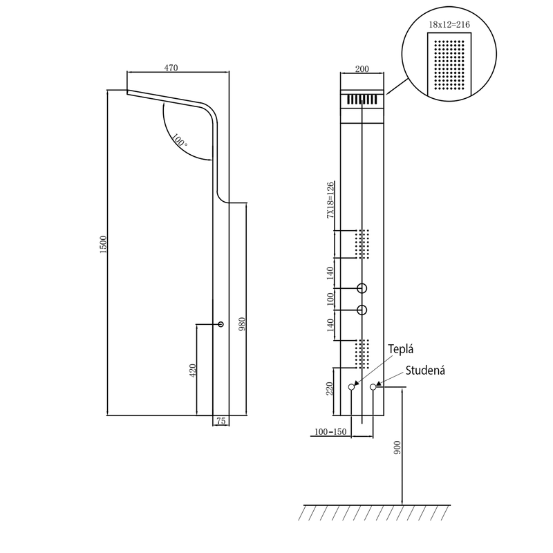 Sapho Jacob zuhanypanel,200x1500mm,matt fekete WN683