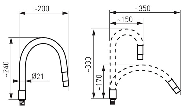 W100P-B Elasztikus kifolyócső konyhai csaptelepekhez (Algeo Square, Lugio, Ratio, Zumba, Capella, Fitness, Lara, Lecco, Marina, Medina). Bézs.