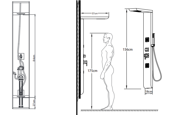 Tükörfényes, polírozott, rozsdamentes acél zuhanypanel-test