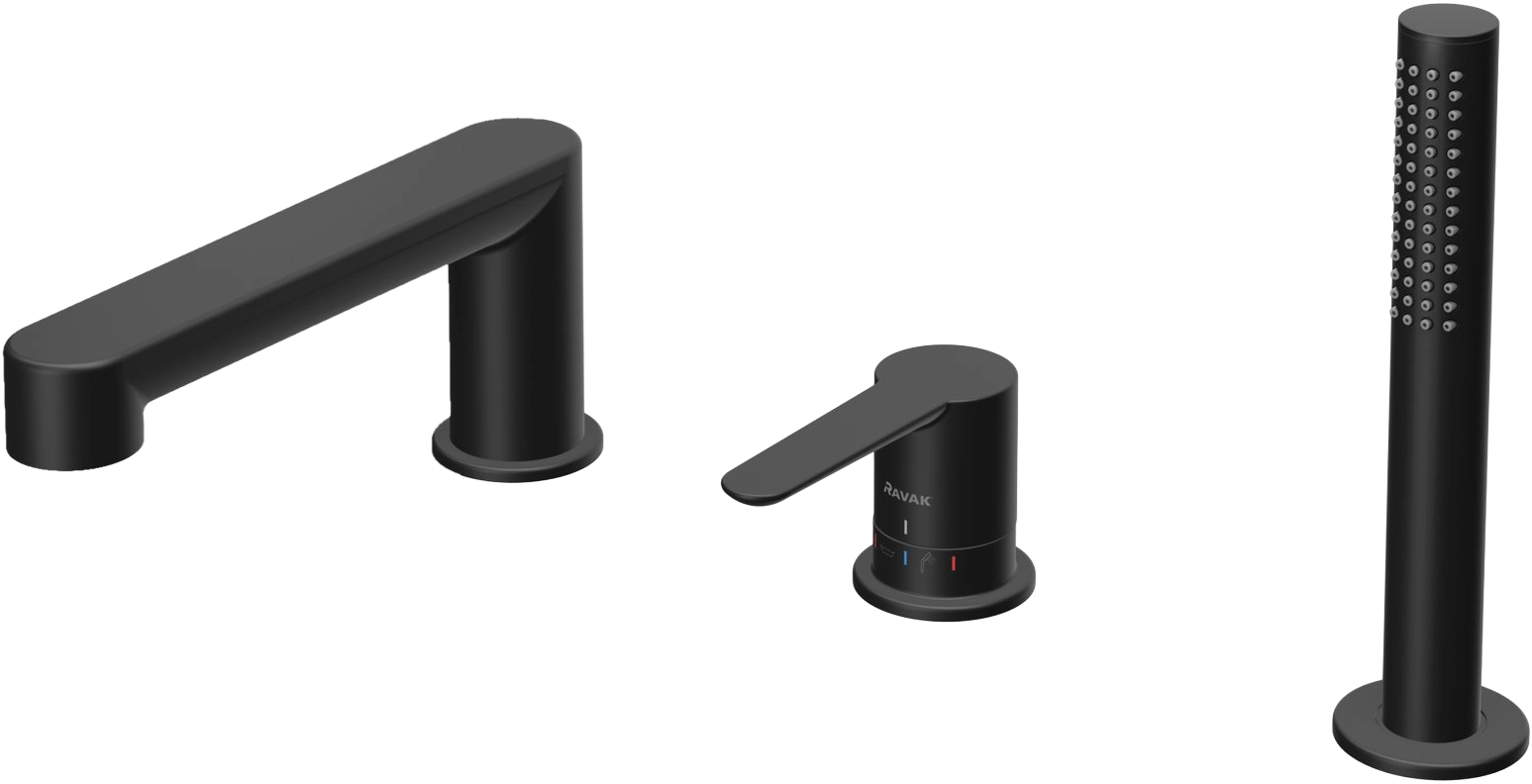 Ravak Puri kádperem csaptelep (3 utas) forgó váltóval, zuhanyszetttel, fekete