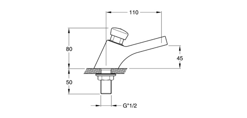 A csaptelep megnyomása után a víz automatikusan megindul, majd a csaptelep önműködően elzárja azt.