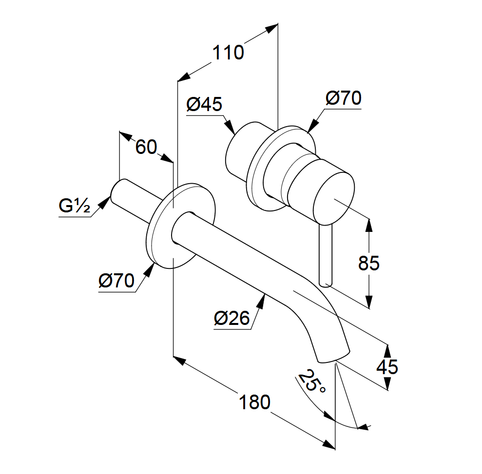 KLUDI-BOZZ falsík alatti, kétlyukas, fali mosdócsap