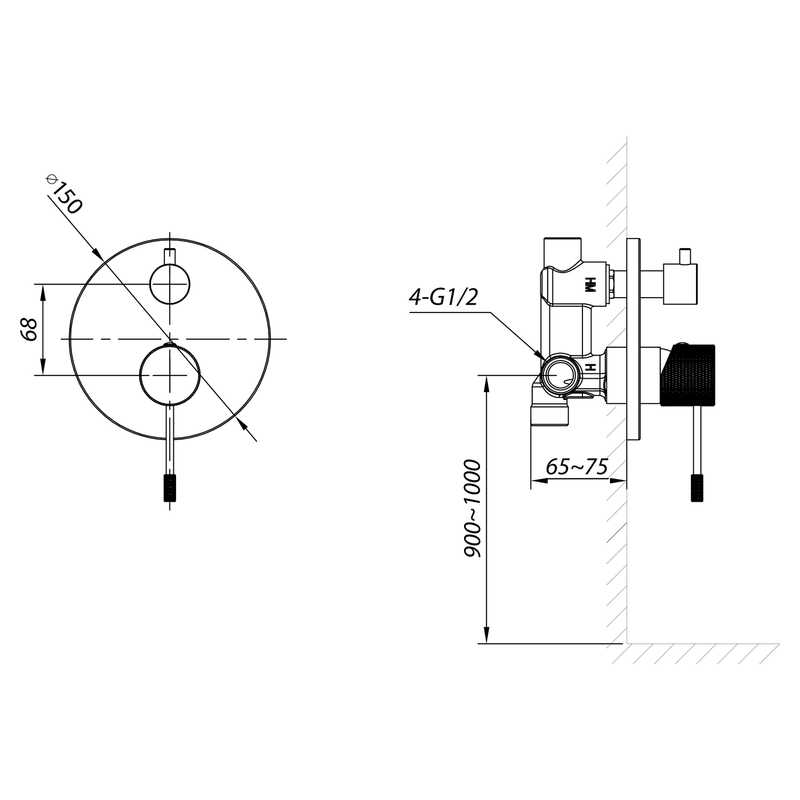 Sapho Solaris falba süllyesztett 2 irányú csaptelep, matt fekete