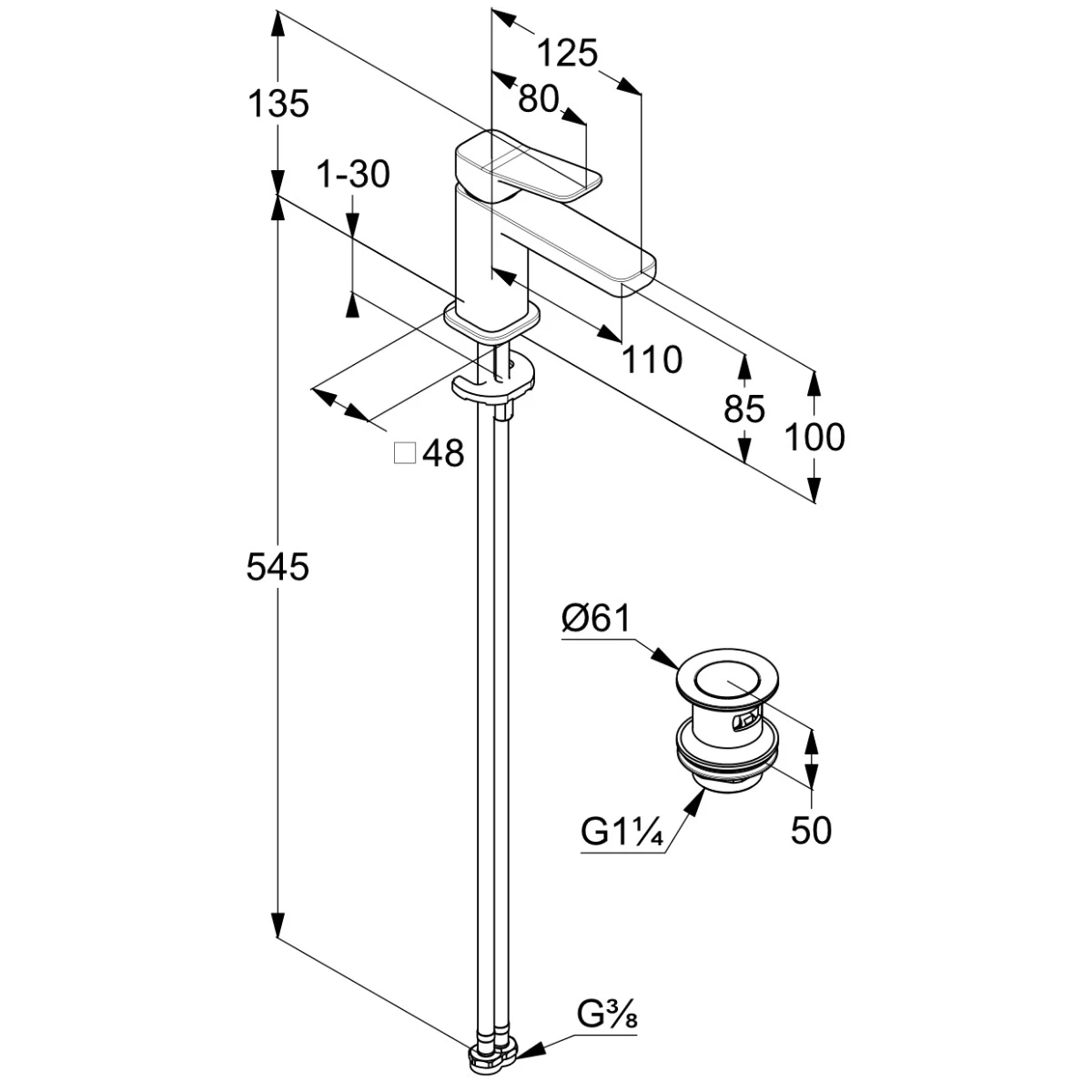 Kludi X3 "S"-es mosdócsaptelep nyomásra nyíló lefolyószeleppel. króm