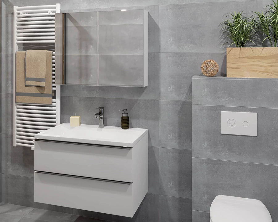 Betonhatású sötétszürke matt modern stílusú ,élcsiszolt kültéri és beltéri használatra egyaránt alkalmas.