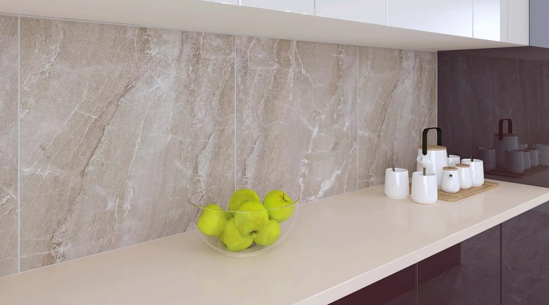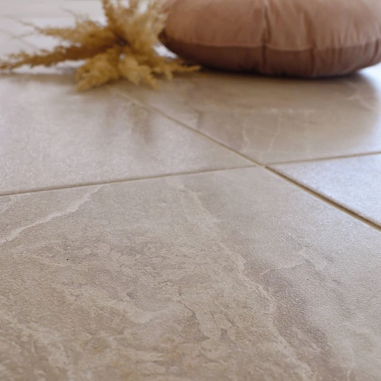 Fényes graníliás felületű, nagy formátumú padlóburkoló lap.