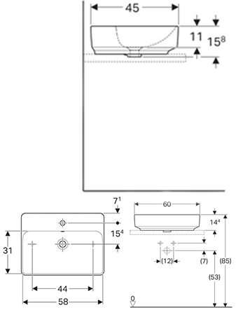 Geberit VariForm pultra ültethető mosdó, szögletes 60 cm