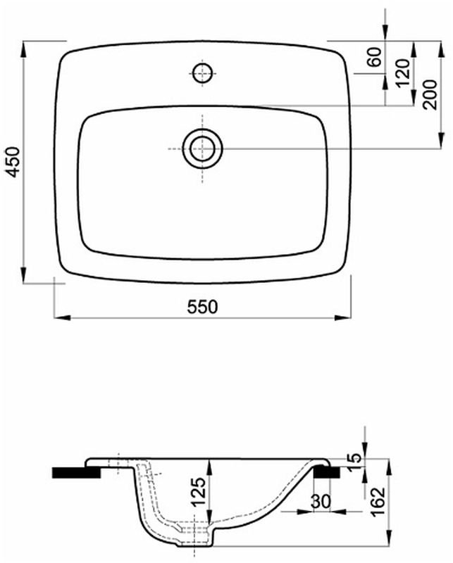 Geberit Selnova Square beépíthető mosdó, szögletes 55x45 cm