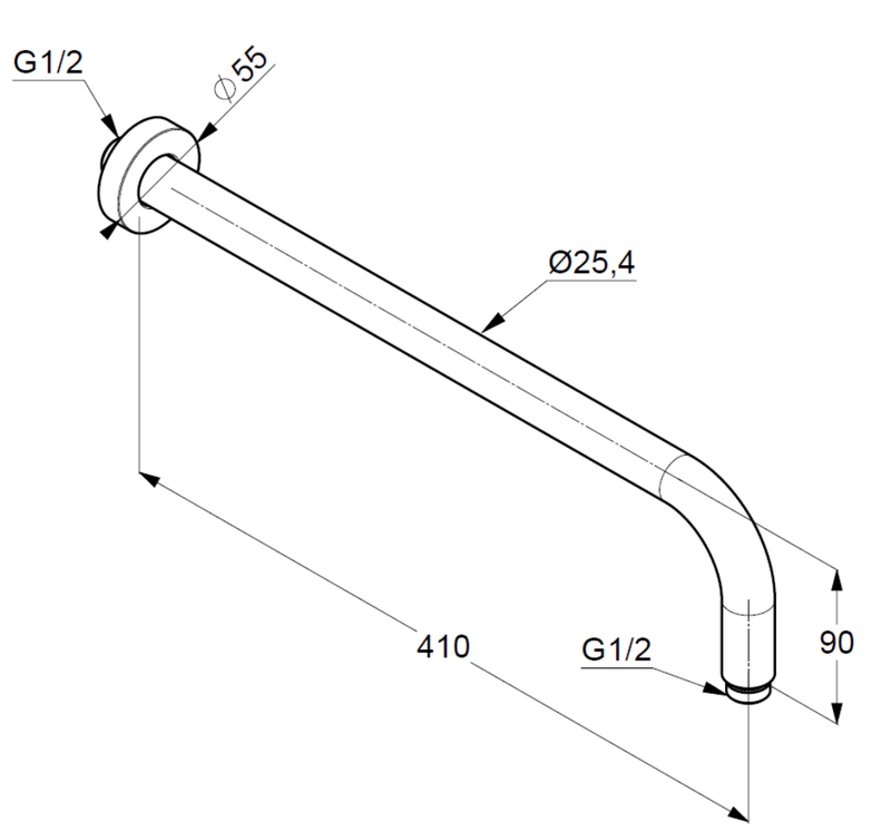 für tányér-fejzuhany kar benyúlása 400 mm