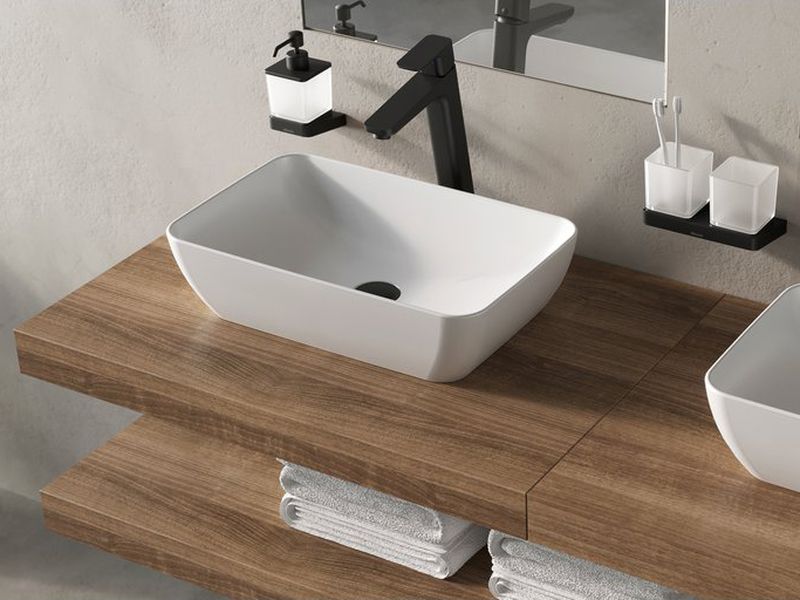 Az UNI SLIM mosdó kiváló minőségű kerámiából készül, és csak L-alakú vagy I-alakú mosdó alatti pultra, vagy SUD 260.01 pulton elhelyezett mosdó alatti mosdószekrényre szerelhető.
