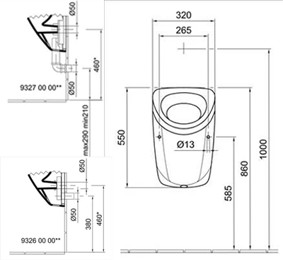 Alföldi Saval 2.0 vizelde felső bekötésű szifon nélkül