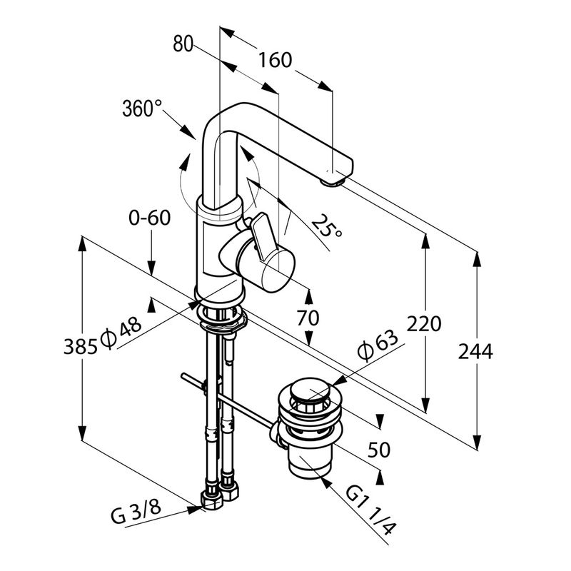 Kludi Zenta magasított, oldalkaros mosdó csaptelep, automata leeresztővel