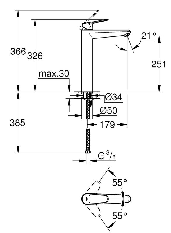 Grohe Eurodisc Cosmopolitan XL magasított egykaros mosdó csaptelep, leeresztő nélkül