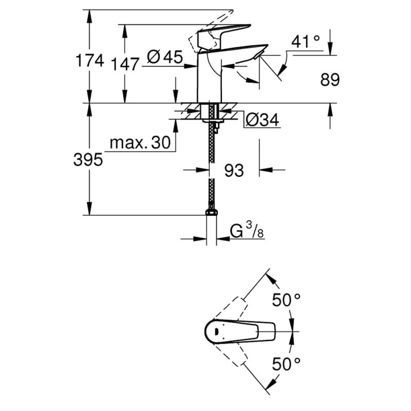 Grohe BauEdge egylyukas kivitel fém fogantyúval