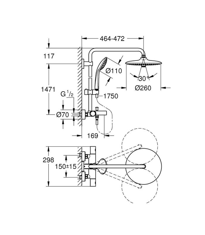 Grohe Euphoria 260 zuhanyrendszer termosztátos kádcsapteleppel