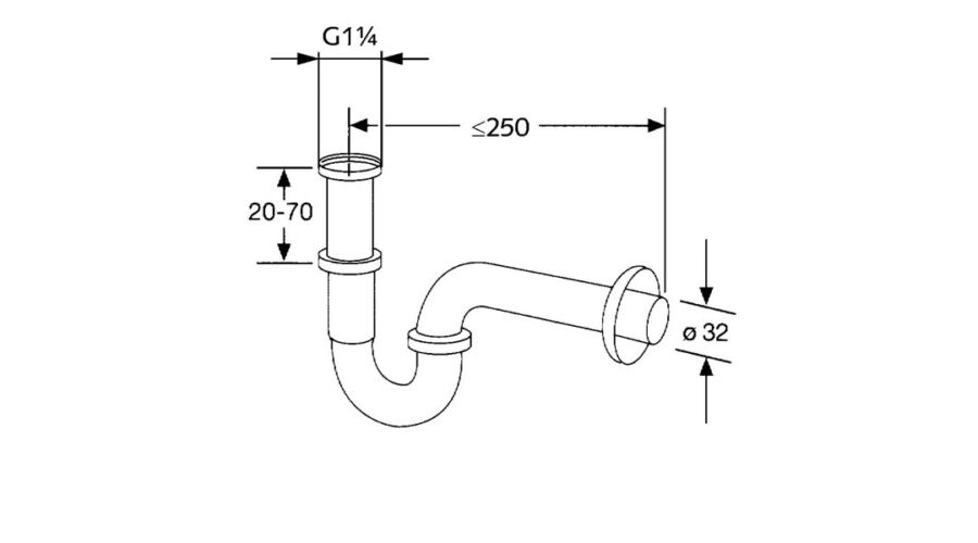 Kludi csőszifon 5/4", 250mm-es lefolyóívvel