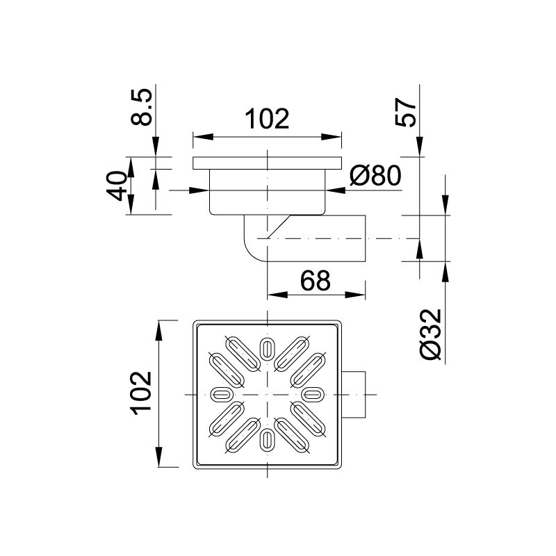 Rozsdamentes ráccsal O32 mm-es elfolyással, szabványon kívüli bűzzárral