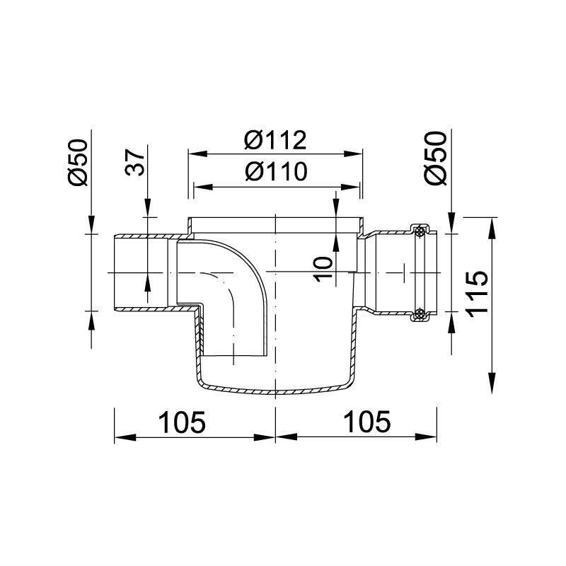 Styron Szuezszifon III ágú, tokozott, gumigyűrűs 50 mm