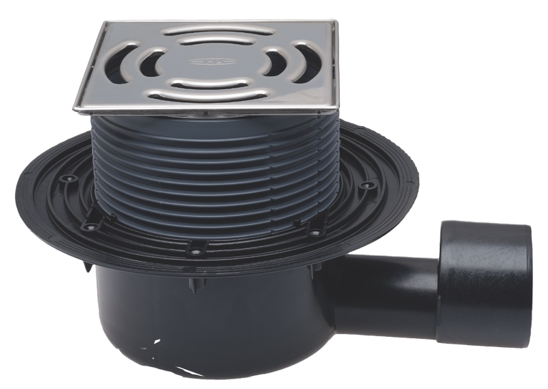 HL5100PR Padlólefolyó DN50/75 vízszintes kimenettel 145x145 mm Klick-Klack rácstartóval,138x138 mm ráccsal, Primus bűzzárral