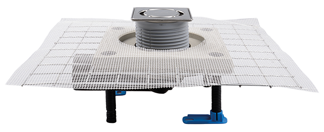 a csempézés idejére merevítő védőfedéllel, polymerbeton szigetelő karimával,