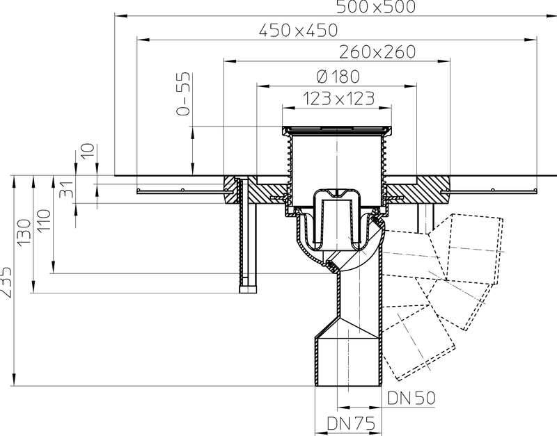 HL80.1C Padlólefolyó DN50/75 elfordítható kimenettel