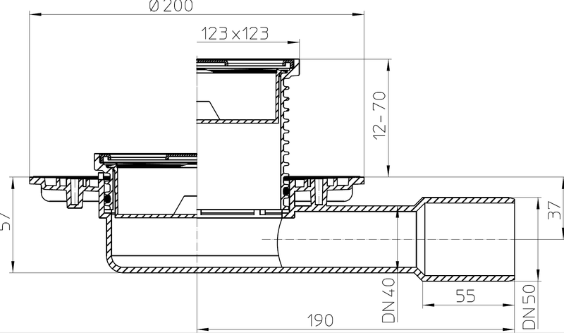 HL90 Balkon- és teraszlefolyó DN40/50 vízszintes kimenettel