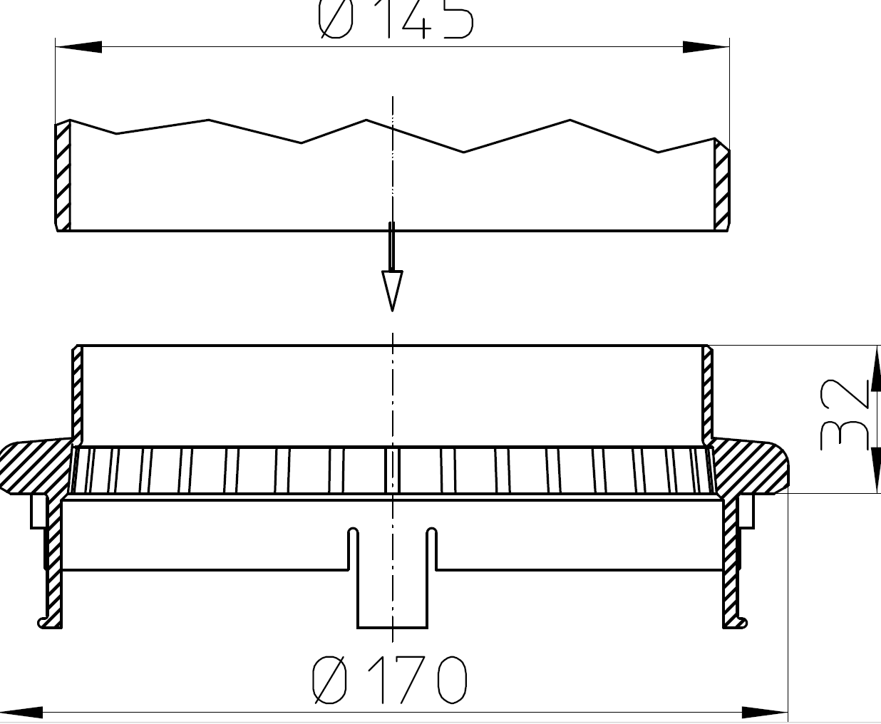 Balkon és teraszlefolyó. Csatlakozó méret D170 mm.
