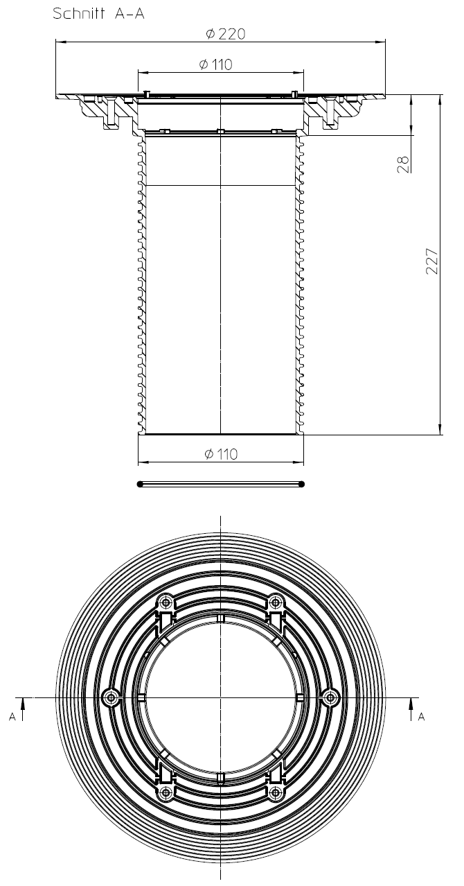Magasító elem szennyvízelvezetéshez, szigetelőgallérral.