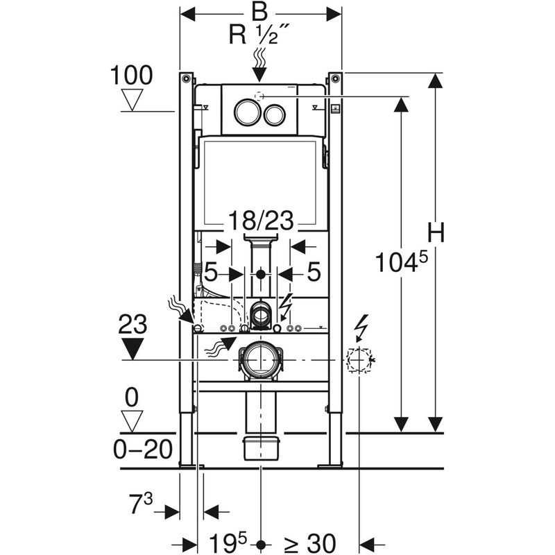 Geberit Duofix fali WC-szerelőelem, 112 cm, Delta 12 cm-es falsík alatti öblítőtartállyal, Delta20 működtetőlap