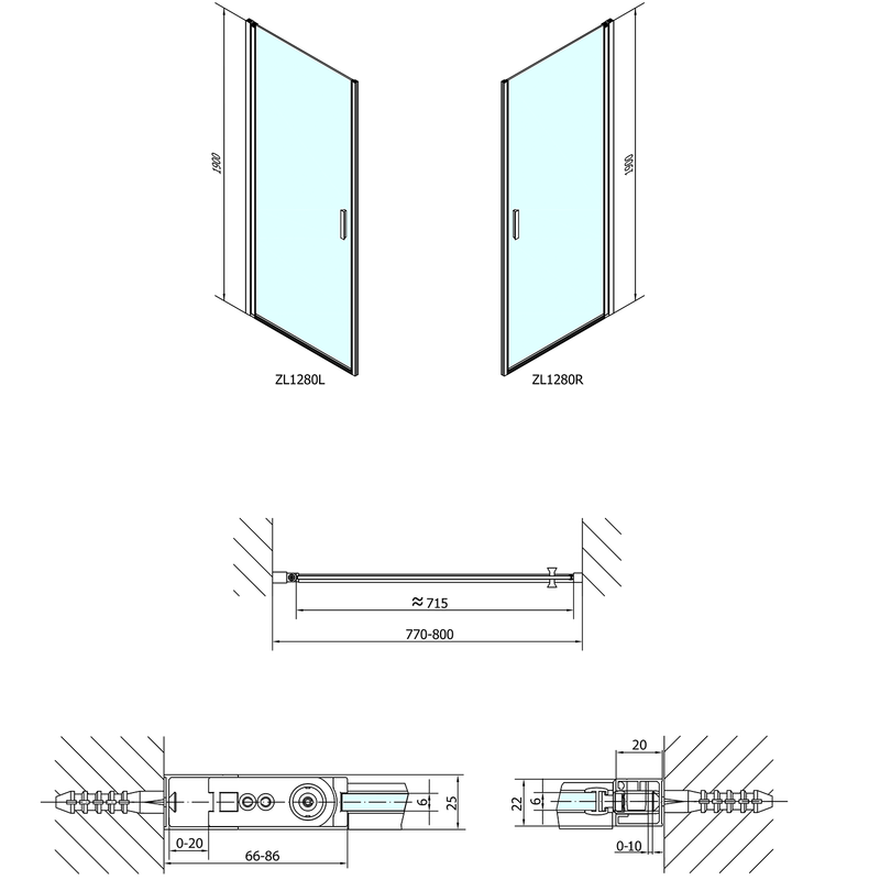 Polysan ZOOM LINE 80 cm-es nyíló zuhanyajtó (ZL1280).