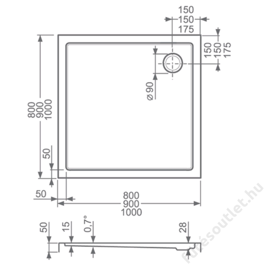 Roltechnik Flat Kvadro négyszögletű akril zuhanytálca.