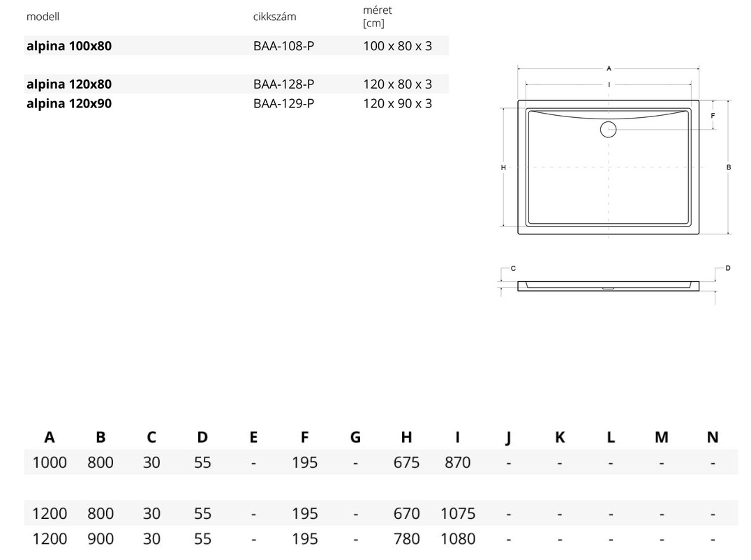 Niagara Wellness Alpina szögletes zuhanytálca 100x80