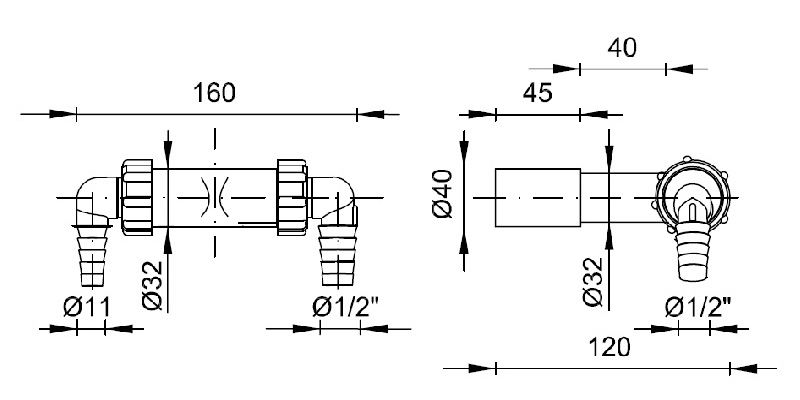 Styron 520-T bekötő mosógéphez 40-32 mm